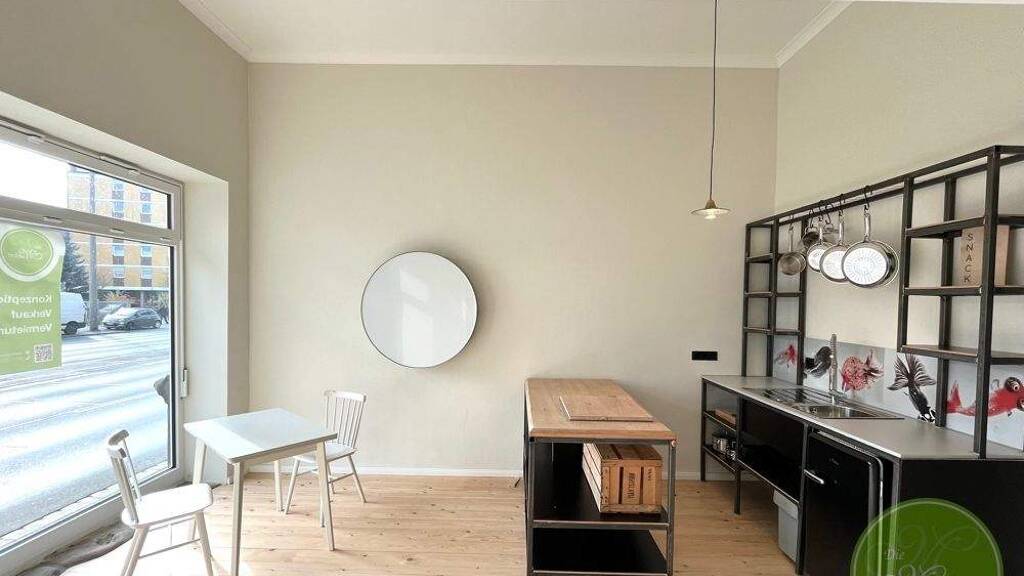 Die Intension: Die ehemalige Werkstatt mit großem Schaufenster, mit ihren alten breiten Eichenholzböden, als Office mit einer auf Maß geschweißten Küche aus Naturstahl, und als WorkingStation das Schaufenster mit vollem Blick auf das Menschen- und Verkehrstreiben der Stadt! ... und im hinteren Teil der Wohnung Ihre PrivatROOMS oder ein weiterer kleiner Büroraum, und klar, auch netzwerkverkabelt.