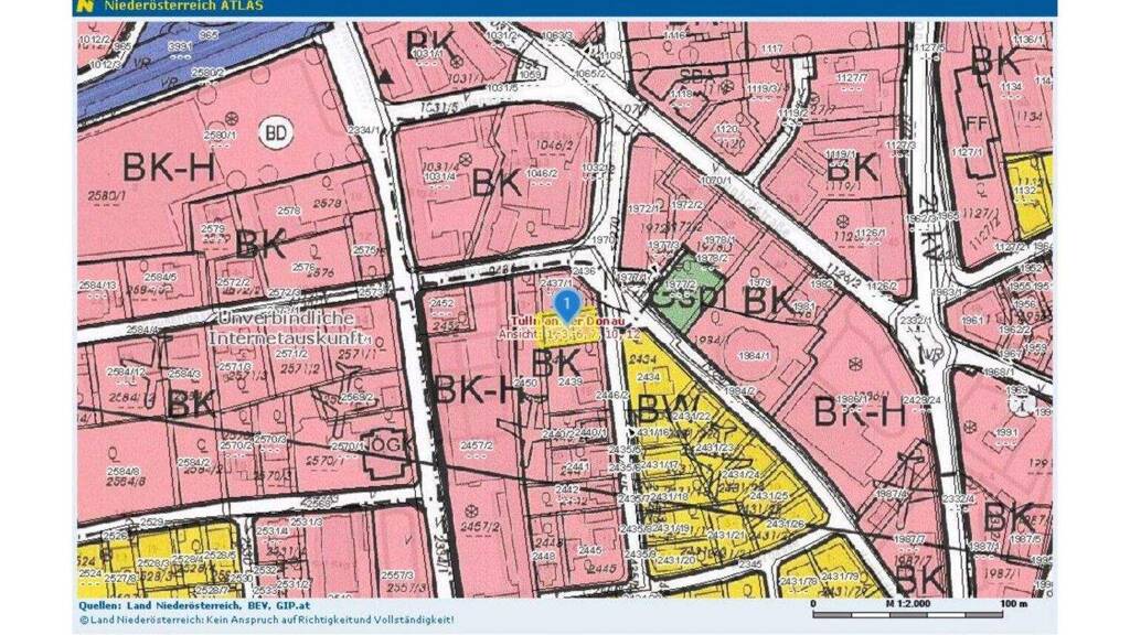 Die Liegenschaft ist als Bauland-Kerngebiet (BK) gewidmet, ein weiterer Parameter, welcher für das Grundstück spricht ist, dass kein Bauzwang vorhanden ist. Die Widmung als Bauland-Kerngebiet in Bauklasse I, II lässt eine 40%ige Bebauung in offener, oder gekuppelter Bauweise, gemäß der beiliegenden Verordnung zu.