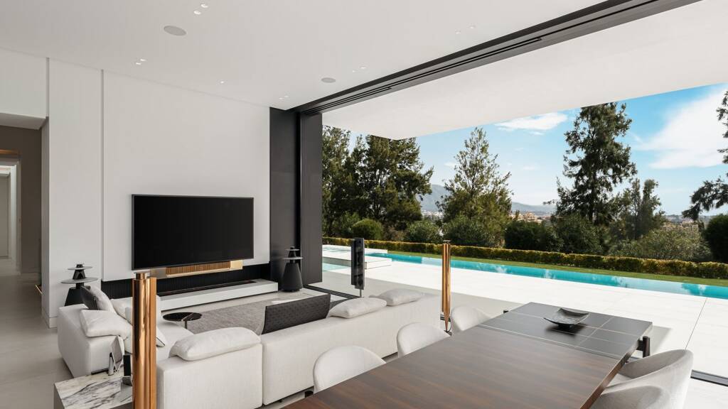 Umgeben von idyllischer Natur und ähnlichen Luxusimmobilien befindet sich das 767 m² große Haus im modernen Stil mit wunderschönen 200 m² großen Terrassen auf einem 1.292 m² großen Grundstück. Es bietet atemberaubende Ausblicke auf den Berg La Concha, einen Blick auf das offene Meer in Richtung Marbella und fantastische Sonnenuntergänge über Gibraltar. Die Villa ist auf einer Ebene angeordnet und verfügt über einen großen Wohn- und Essbereich, eine offene moderne Küche, 4 großzügige Schlafzimmersuiten mit 4 en-suite Badezimmern. Auf der unteren Ebene besteht die Möglichkeit, ein Kino, einen Fitnessraum oder ein Spielzimmer zu beherbergen.