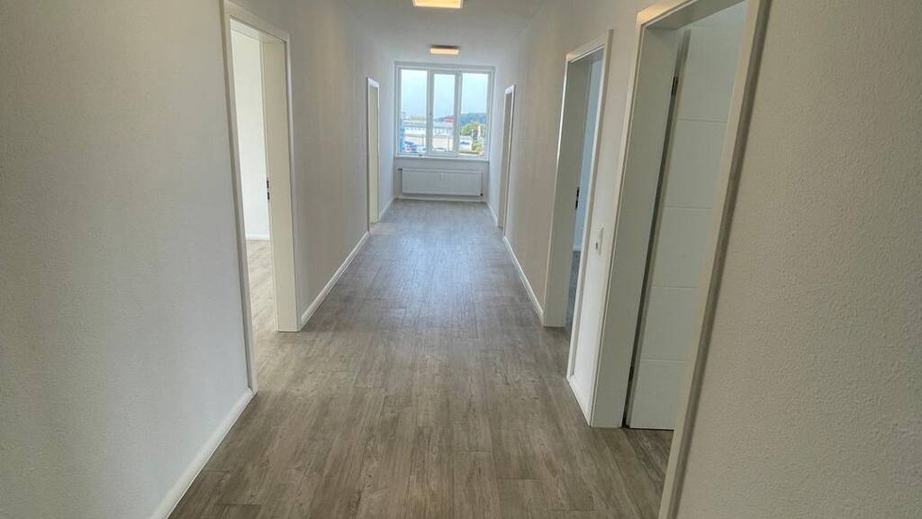 Die zu vermietende Einheit ist als Büro-/ Praxis-/ oder Gewerbefläche nutzbar und befindet sich im 1. OG eines Wohn- und Geschäftshauses. Die rd. 105 m² Mietfläche teilen sich auf in 5 Räume, den Flur und die getrennte Damen und Herren WC;s sowie der Pantryküchen auf.