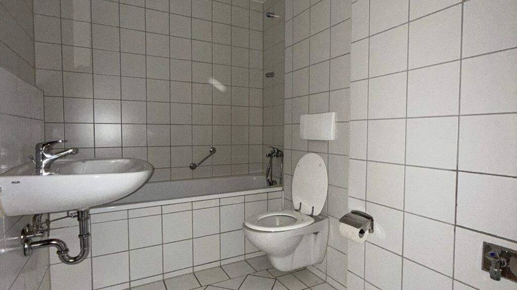 Der helle Wohn- und Schlafbereich ist großzügig geschnitten und ermöglicht eine klare Trennung von Wohnen, Schlafen und Arbeiten. Das Badezimmer mit Badewanne ergänzt das Angebot komfortabel und rundet den Wohnstandard ab.