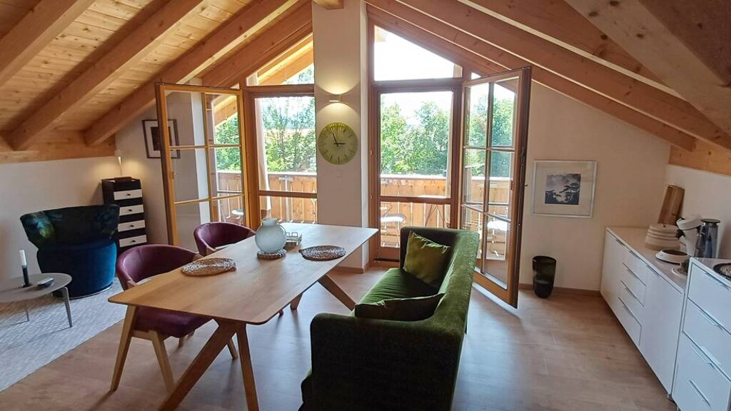 Möbliertes Wohnen auf Zeit: Möblierte 3-Zimmer-Dachgeschosswohnung mit Balkon in Ried (Kochel am See)