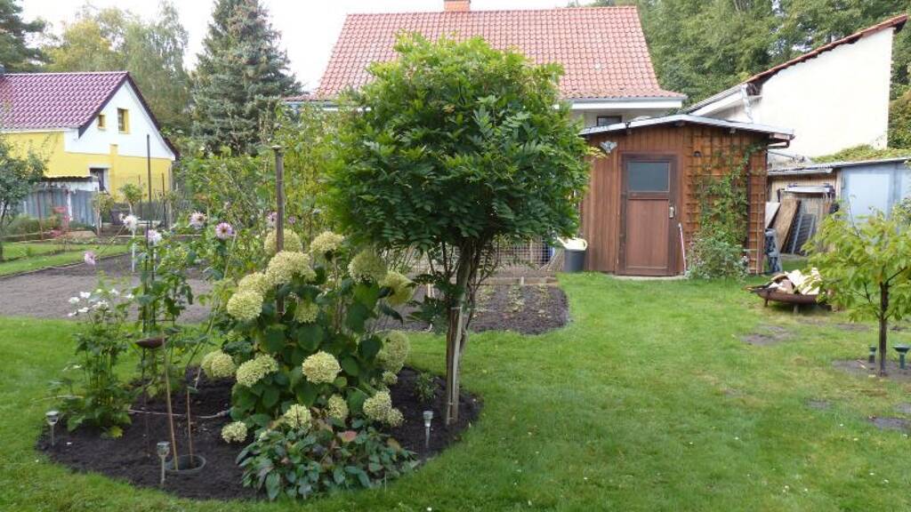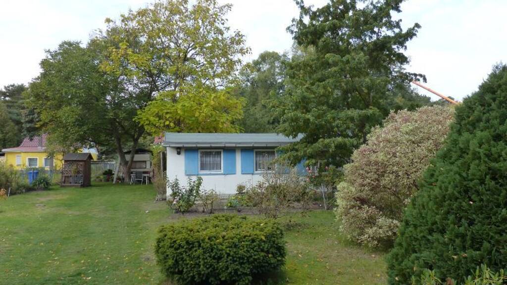 Die Liegenschaft ist mit einem eingeschossigen Gartenhaus (ca. 35 m² Grundfläche) sowie zwei Holzschuppen bebaut. Dem Gartenhaus ist auf der Westseite eine befestigte, überdachte Gartenterrasse vorgelagert.