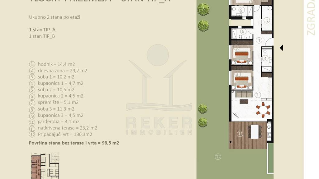 Stellplatz vorhanden, Anzahl der Schlafzimmer: 3, Anzahl der Badezimmer: 3, Anzahl Terrassen: 1, Balkon-Terrassen-Fläche: 23,00 m², Gartenfläche: 186,90 m², 1 Etagen, Distanz vom Zentrum: 2.00