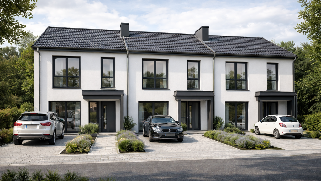 Dieses hochwertig geplante Reiheneckhaus entsteht in zentraler Stadtlage und verbindet modernes Wohnen mit effizienter Bauweise. Auf ca. 100 m² Wohnfläche und einem großzügigen Grundstück von ca. 236 m² bietet es mit fünf Zimmern, darunter 3 Schlafzimmer, 1 Büro und ein Studio im Dachgeschoss viel Platz für Familien oder Paare. Die massive Bauweise und ein zeitgemäßer Energiestandard sorgen für nachhaltigen Wohnkomfort. Hochwertige Bodenbeläge aus Fliesen, Parkett und Laminat sowie Fußbodenheizung und eine bedarfsgeführte Lüftungsanlage schaffen ein angenehmes Raumklima. Die Wärmepumpe und eine Photovoltaikanlage ergänzen das moderne Energiekonzept.