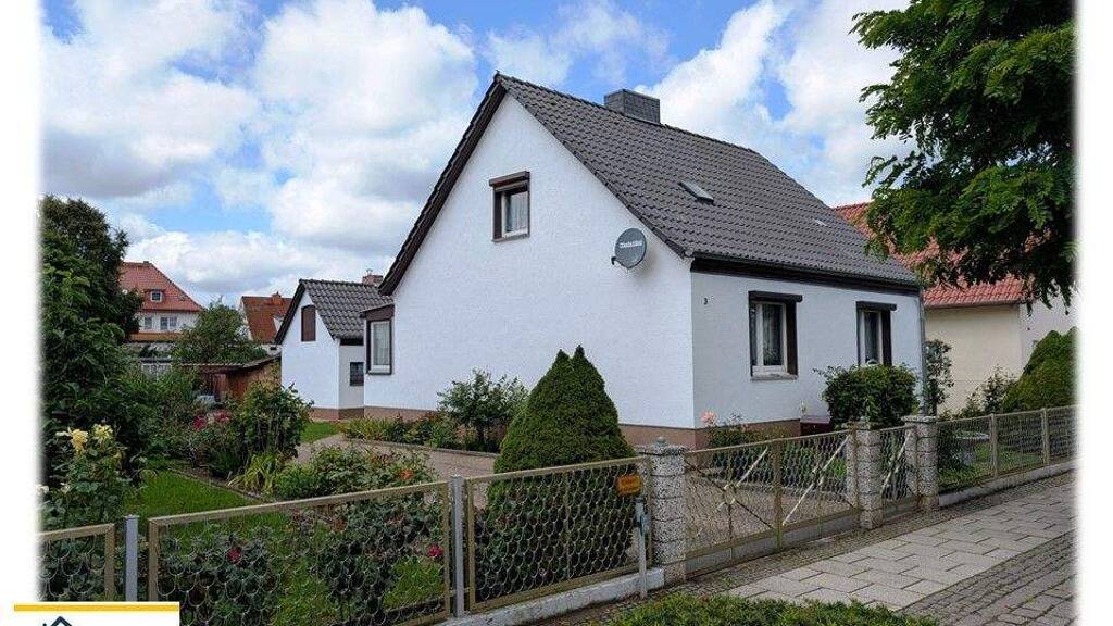 Zum Kauf auf Eigentumsland wird angeboten, ein um 1935, in massiver Bauweise errichtetes, teilunterkellertes Einfamilienhaus, welches sich im Erdgeschoss mit einer Veranda, 3 Zimmern, Küche, ebenerdiges Duschbad mit WC, Flur und Veranda erschließt. Im ausgebauten Dachgeschoss befindet sich eine große Diele und ein weiteres Zimmer. Im Haus und auf dem Grundstück sind Sanierungsarbeiten durchgeführt worden, so erfolgten 1993 der Einbau einer Heizoel Zentralheizung mit Warmwasseraufbereitung, 1997 eine neue Dacheindeckung auf dem Wohnhaus und dem Nebengebäude, 1999 Erneuerung der Fassade, 2000 Einbau von Holz Isolierglasfenster, abschließend wurde 2003 der Innenhof gepflastert. Weiterhin besteht im Haus Modernisierungsbedarf. Das 745qm große Grundstück erschließt sich mit einem massiven Nebengebäude, hier ist die Heiz- und Warmwassertechnik untergebracht und einer beheizten Waschküche mit WC und Dusche. Weiterhin gibt es angebaute Schuppen und eine Garage. Auf dem Gartenteil, welcher ca. 1/3 vom Grundstück beträgt, stehen verschieden Arten von Obstbäumen.