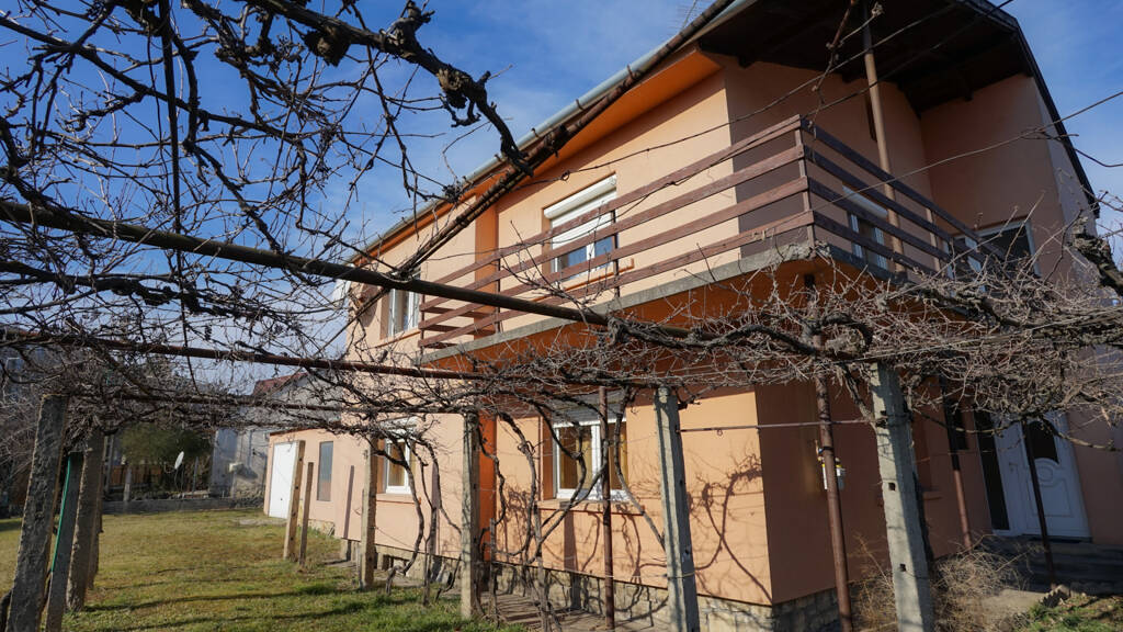 Das Hauptgebäude umfasst eine 64 m2 große Garage und einen gemauerten Keller mit Gewölbedecke. Durch die Eingangstür aus Kunststoff betreten wir den Flur, gegenüber befindet sich das Badezimmer mit Badewanne und WC, nach links öffnet sich das Wohnzimmer. Vom Wohnzimmer aus gelangt man in das andere Zimmer im Erdgeschoss. Vom Flur aus gelangen wir in die Wohnküche und durch die Speisekammeröffnung auch in die an das Hauptgebäude angebaute Garage. Im Obergeschoss angekommen, gegenüber dem Badezimmer mit separater Toilette, finden Sie links 2 große Zimmer und den Balkon mit einem kleineren Trockenraum.