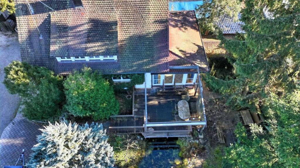 Durch das große Raumangebot im Haus ergeben sich viele Wohn-und Nutzungsmöglichkeiten. Aufgrund seiner Aufteilung kann es als Einfamilienhaus oder Zweifamilienhaus bewohnt werden. Der später angebrachte Wintergarten lässt viel Licht in den Wohnraum und vergrößert das Wohnzimmer zum Garten hin. Vor dem Haus genießen Sie auf der schönen Südterrasse den Blick ins Grüne und den herrlichen Garten mit Teich. Der Garten lädt zum gemütlichen Entspannen, Grillen, Gärtnern und Spielen für die Kinder ein. Ein Highlight ist sicherlich der Außenpool.