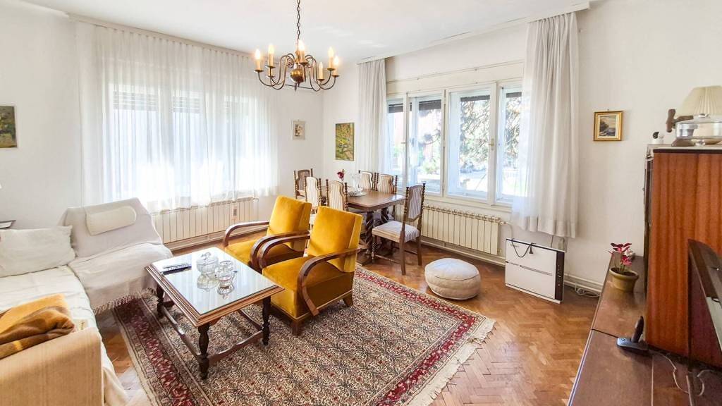 Stan se nalazi u visokom prizemlju zgrade izgradene 1938. godine. Njegova povrsina iznosi 101,37 m2, a sastoji se od ulaznog hodnika, open-space dnevnog boravka, kuhinje i blagovaonice, tri spavace sobe, kupaonice te balkona povrsine 2,76 m2.
