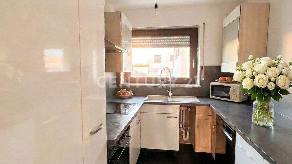 Das Herzstück der Wohnung ist der weitläufige, lichtdurchflutete Wohn- und Essbereich. Dank der großen Fensterfronten genießen Sie hier eine helle, einladende Atmosphäre. Von hier aus gelangen Sie direkt auf den großzügigen Balkon, der zum Entspannen im Freien einlädt.