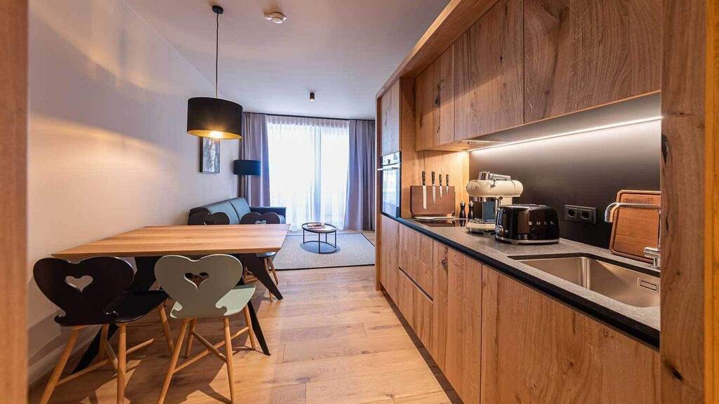 Die Apartments bieten eine umfassende Infrastruktur außerhalb Ihres Eigentums, darunter ein Restaurant, ein SPA & Wellness-Bereich, Skiräume und ein überwachter Gepäckraum. Jede Ferienwohnung ist individuell gestaltet und im Chalet-Stil eingerichtet.