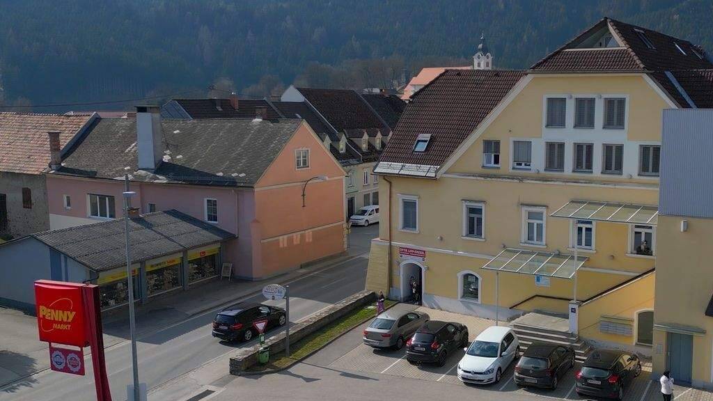 zentral am Hauptplatz in Bad St. Leonhard, direkt am Parkplatz vor dem Supermarkt