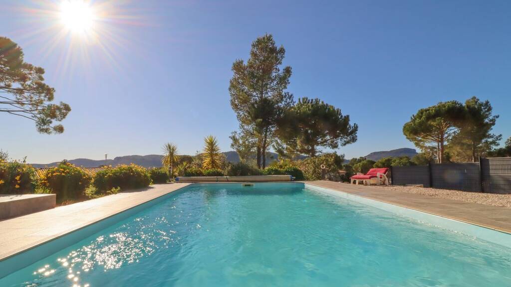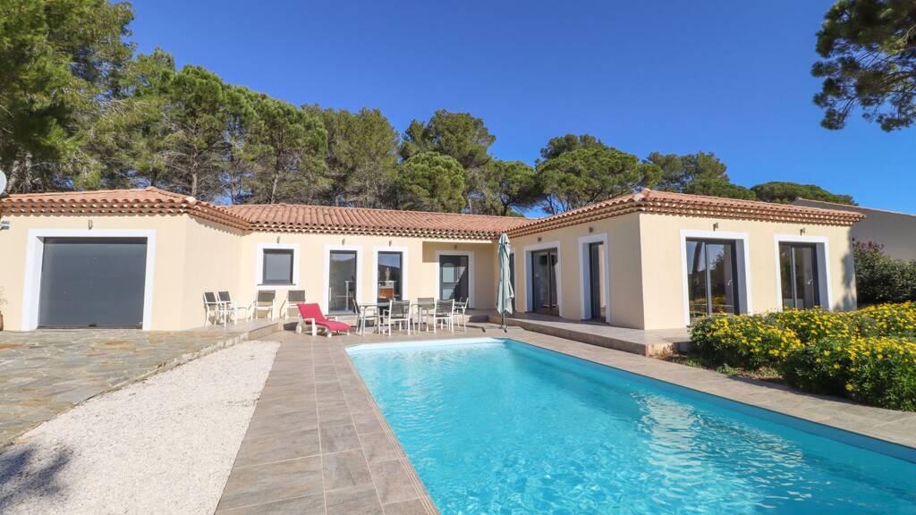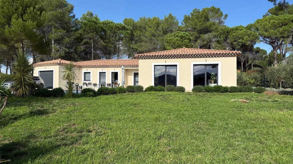 Offering an unobstructed view of the surrounding hills, this single-storey villa seduces with its volumes and its brightness. Its living space of 70 m2 includes an open equipped kitchen, a dining room and a spacious living room. It has three large bedrooms, two of which have a dressing room, a bathroom and a toilet.