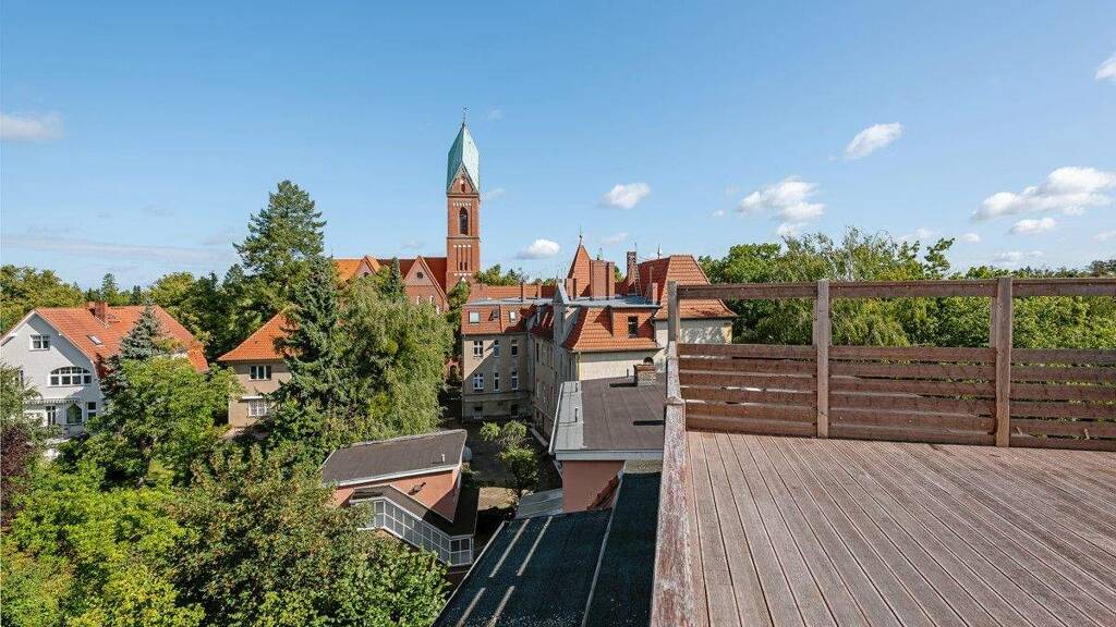Ein besonderes Highlight der Wohnung ist die großzügige, uneinsehbare Dachterrasse, die über eine Treppe mit dem ausgebauten Spitzboden verbunden ist. Hier lassen sich sowohl ein stilvoller Essbereich im Freien als auch eine gemütliche Loungeecke realisieren - ein Rückzugsort mit maximaler Privatsphäre und außergewöhnlichem Wohnwert.