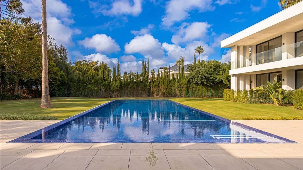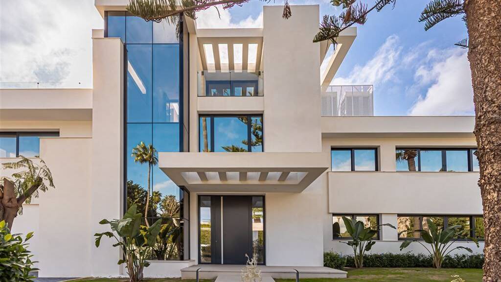 Dieses anspruchsvolle und moderne Haus mit 5 Schlafzimmern und eigenem Bad wurde kürzlich fertiggestellt und befindet sich in der prestigeträchtigen Wohngegend Reyes y Reinas, im Herzen der Costa de Sotogrande, nur wenige Gehminuten vom Strand und dem Yachthafen von Sotogrande entfernt.