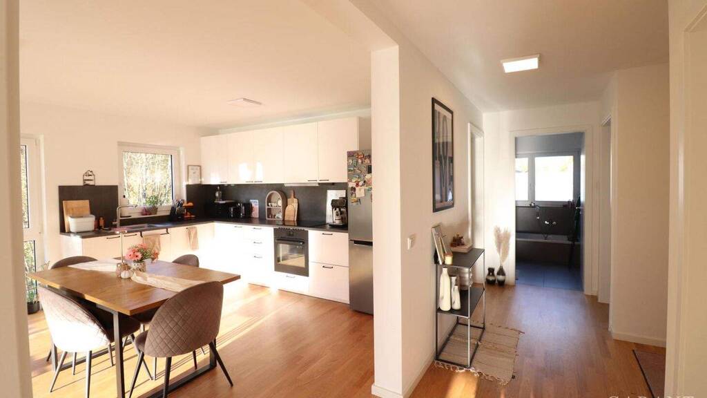 Diese ca. 105m² große 4 Zimmer-Wohnung befindet sich im ersten Obergeschoss eines Mehrfamilienhauses aus dem Jahr 2023 mit 14 Einheiten. Die Beheizung erfolgt über eine moderne Hybridheizung mit Gas und Wärmepumpe.