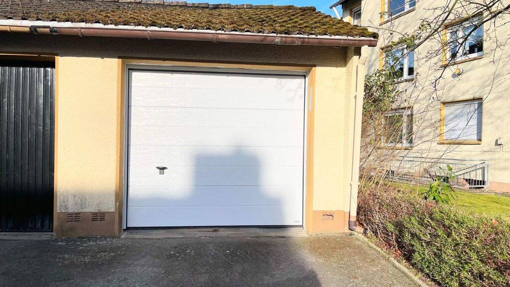 Die Garage ist mit einem Sektionaltor ausgestattet