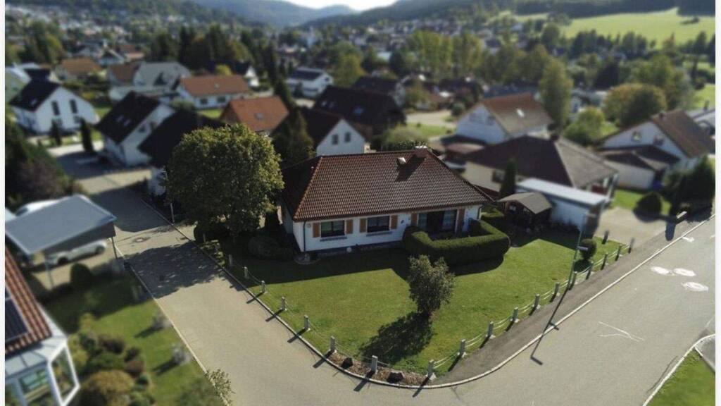 Schöner Einfamilien-Bungalow in ruhiger Wohnlage von Wehingen - willkommen zu Hause! Das im Jahr 1992 errichtete Haus steht auf einem ca. 806 m² großen, sonnigen Grundstück und bietet eine großzügige, durchdachte Raumaufteilung. 2024 renoviert - gepflegter Gesamteindruck.
