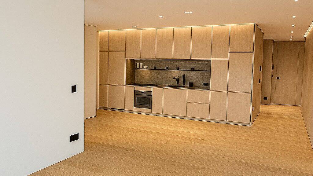 * Moderne Designküche mit hochwertigen Geräten * Maßgefertigte Einbauschränke für stilvollen Stauraum * Offenes, lichtdurchflutetes Wohnkonzept * Hochwertige Parkettböden & Feinsteinzeug * Klimaanlage für ganzjährigen Komfort
