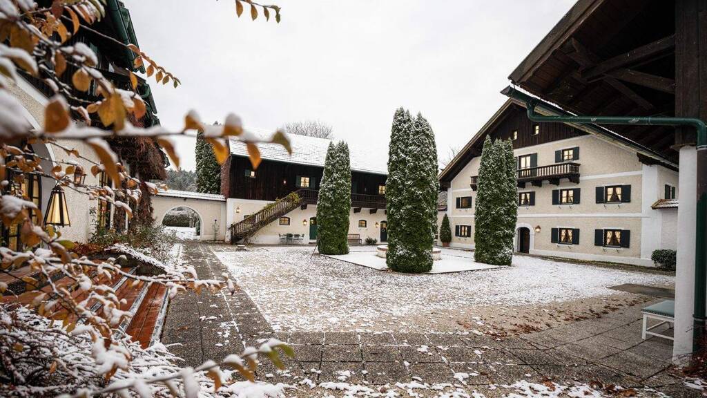 Das Landgut mit 8 Gebäuden befindet sich auf einem ca. 23.000 m² großen Areal, das zur Gänze Bauland ist, in einer äußerst reizvollen Naturlandschaft nur ca. 30 km von Salzburg entfernt, in der Gemeinde Auerbach in Oberösterreich. In der Anordnung eines ursprünglichen Vierkanthofes fügt sich die Anlage harmonisch in die weitläufige Parkanlage.