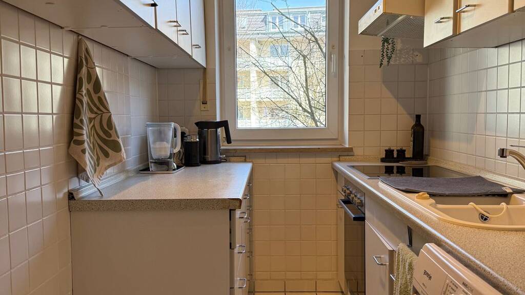 Die separate Küche ist funktional gestaltet und bietet ausreichend Arbeitsfläche sowie Stauraum für den täglichen Bedarf. Durch das vorhandene Fenster ist der Raum gut belüftet und angenehm nutzbar. Die Küche lässt sich praktisch einrichten und bietet genügend Platz für alle wichtigen Küchengeräte.