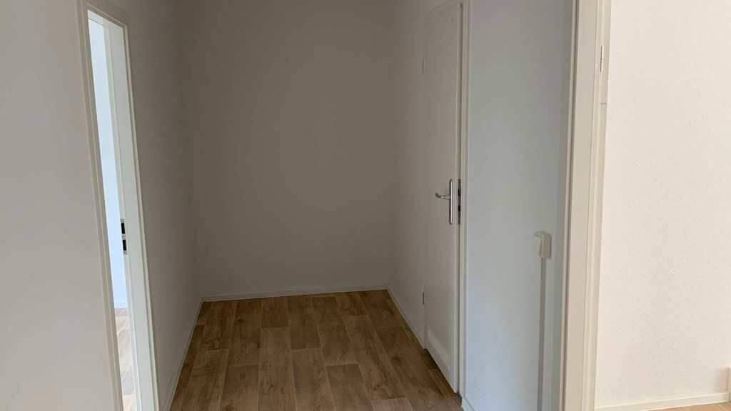 Die Wohnung wurde komplett saniert. Alle TĂĽren sind neu und mit einer Zarge versehen. Der FuĂźboden hat einen modernen PVC in Holzoptik erhalten. Die Elektrik ist neu. Das Bad ist gefliest und mit einer Wanne versehen.