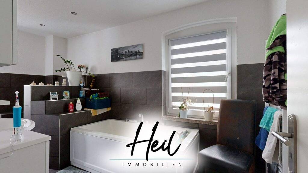 Insgesamt stehen vier Badezimmer zur Verfügung, ausgestattet mit Duschen sowie einer Badewanne. Die Warmwasserbereitung erfolgt über Durchlauferhitzer. Als Bodenbeläge wurden unter anderem Holzdielen im Erdgeschoss, Laminat bzw. Klicklaminat sowie Fliesen verwendet. Die Immobilie verfügt über Kunststofffenster mit zweifacher Verglasung. Die Fassade ist verputzt und gestrichen, das Dach mit Tondachziegeln eingedeckt.