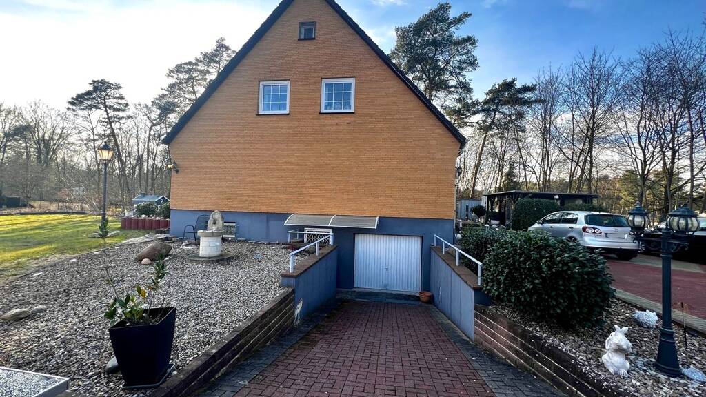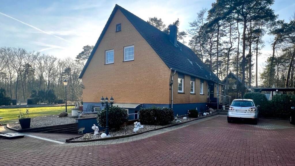 Das prächtige Zweifamilienhaus mit großzügigem Charme steht in begehrter Lage von Hambühren und besticht durch seine ruhige Umgebung und die beeindruckende Außenfläche. Auf dem ca. 2.606 m² großen Grundstück befinden sich neben dem Haus eine große Doppelgarage, fünf Stellplätze sowie zwei Gartenbrunnen. Das Haus mit seiner hellen Klinkerfassade wurde 1969 errichtet. Es handelt sich um ein Okal-Fertighaus und befindet sich in gepflegtem Zustand. Besonders ins Auge fällt der riesige Garten. Die Fenster des Hauses wurden in den letzten Jahren energetisch modernisiert und tragen zur Effizienz der Immobilie bei. Der weitläufige Garten lädt zum Gärtnern, Fußballspielen und Grillen ein und bietet ideale Voraussetzungen für entspanntes Outdoor-Leben. Die nach Südwesten ausgerichtete Terrasse ist ein idealer Ort für gesellige Grillabende mit Freunden und Familie. Mit einer großzügigen Wohnfläche von ca. 217 m², verteilt auf acht Zimmer, bietet dieses charmante Zweifamilienhaus vielseitige Nutzungsmöglichkeiten. Es eignet sich ideal als klassisches Zweifamilienhaus, kann aber ebenso komfortabel als großzügiges Einfamilienhaus genutzt werden. Ein Vollkeller sowie eine Doppelgarage bieten zusätzlichen Stauraum und praktische Abstellmöglichkeiten. Das Erdgeschoss begeistert mit fünf gut geschnittenen Zimmern. Dazu gehören ein geräumiges Elternschlafzimmer, zwei gemütliche Kinderzimmer, ein separates Arbeitszimmer sowie ein großzügiges Wohnzimmer. Die moderne Einbauküche ist funktional ausgestattet und fügt sich harmonisch in das Raumkonzept ein. Ein gepflegtes Badezimmer mit Badewanne sowie ein zusätzliches Gäste-WC sorgen für Komfort im Alltag. Über eine elegante Holztreppe gelangt man in das Obergeschoss, das aktuell als separate Wohneinheit genutzt wird. Hier erwarten Sie ein Elternschlafzimmer, zwei Kinderzimmer, ein Abstellraum, eine weitere hochwertige Einbauküche und ein Bad mit Badewanne. Die Raumaufteilung bietet sich aber auch hervorragend für eine einheitliche Nutzung als großes Familienhaus an. Besonders hervorzuheben sind die beiden Marken-Einbauküchen, die vollständig ausgestattet und in ausgezeichnetem Zustand sind. Das Haus verfügt insgesamt über zwei Badezimmer und ein Gäste-WC. Eine komfortable Badewanne schaffen ein angenehmes Ambiente für entspannte Stunden. Dieses vielseitige Haus in Hambühren vereint die Vorzüge eines Zweifamilienhauses mit der Option, es als großzügiges Einfamilienhaus zu nutzen. Es bietet ländliche Ruhe, moderne Ausstattung und viel Platz für ein komfortables Leben - eine ideale Immobilie für Familien, die Flexibilität und Raum suchen.