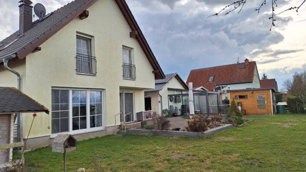 Das im Jahr 2001 errichtete Einfamilienhaus präsentiert sich als gepflegtes Niedrigenergiehaus in solider Massivbauweise und überzeugt durch eine durchdachte Raumaufteilung mit sehr freundlicher Wohnatmosphäre. Große, teils bodentiefe Fenster sorgen im Inneren für lichtdurchflutete, einladende Räume. Kunststofffenster mit elektrischen Rollläden im Erdgeschoss und manuellen im Dachgeschoss bieten zusätzlichen Komfort. Beheizt wird das Haus über eine Gaszentralheizung mit Fußbodenheizung, ergänzt durch einen Kaminofen im Wohnzimmer für absolutes Wohlfühlen in der kalten Jahreszeit. Eine umfassende Dämmung von Boden, Schrägen und Fassade - letztere wurde vor rund sieben Jahren zudem neu gestrichen - unterstreicht den energetischen Anspruch der Immobilie. Eine Photovoltaikanlage ergänzt die Immobilie im Hinblick auf ihre Energieeffizienz. Das Erdgeschoss überzeugt mit einer großzügigen, hellen Diele und einem offenen Wohnkonzept. Das geräumige Wohnzimmer mit Zugang zu Terrasse und Garten geht fließend in die Küche über, die mit hochwertigen Einbaugeräten - überwiegend von Miele - ausgestattet ist. Ein Duschbad sowie ein durchdachter Hauswirtschaftsraum ergänzen das Raumangebot. Im Dachgeschoss stehen drei gut geschnittene Schlafzimmer zur Verfügung. Das dortige, vor rund zwei Jahren modernisierte Badezimmer erfüllt mit Dusche und Badewanne zeitgemäße Ansprüche. Im Außen befindet sich eine Doppelgarage mit elektrischem Tor und zusätzlichem Stauraum im Spitzboden. Ein weiteres Highlight ist das Saunahaus sowie der Wintergarten mit Blick in die Feldlandschaft - Ihr absoluter Wohn- und Erholungswert.