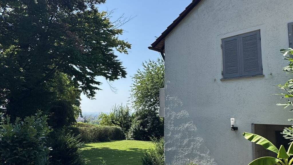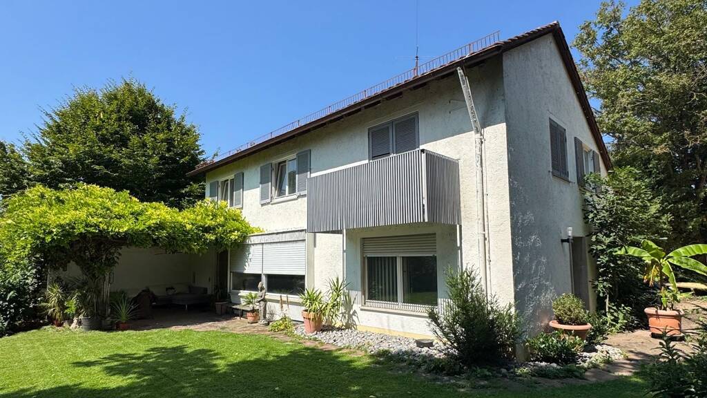 Großzügiger Garten mit altem Baumbestand.