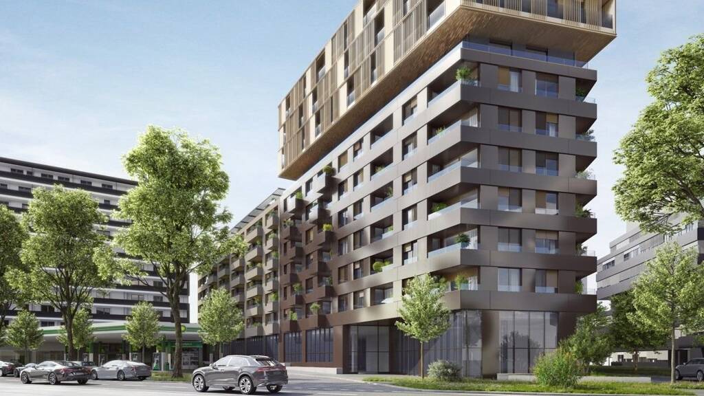 Das markante Gebäude befindet sich am Eingang des Quartiers "Neues Landgut", wo neben neuen Wohngebäuden auch ein ca. 9.000 m² großer Park entsteht. Auch Bildung und Freizeit kommen nicht zu kurz - eine Schule, ein Kindergarten, eine Sportanlage sowie Erholungsflächen stehen ab 2024 für alle Anrainer zur Verfügung.