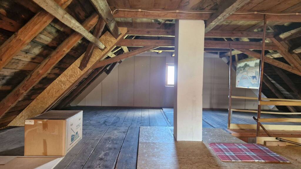 Über eine Holztreppe gelangen Sie in das Obergeschoss. Hier befindet sich auf der linken Seite ein zusätzliches WC sowie der Zugang zum Dachboden, der reichlich Stauraum bietet.