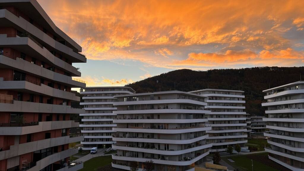 Die moderne Architektur der Anlage überzeugt durch klare Linien, helle Fassaden und großzügige Balkone, die teils begrünt und individuell nutzbar sind. Weitläufige Grün- und Freiflächen rund um die Gebäude schaffen ein freundliches, offenes Ambiente mit hoher Aufenthaltsqualität.