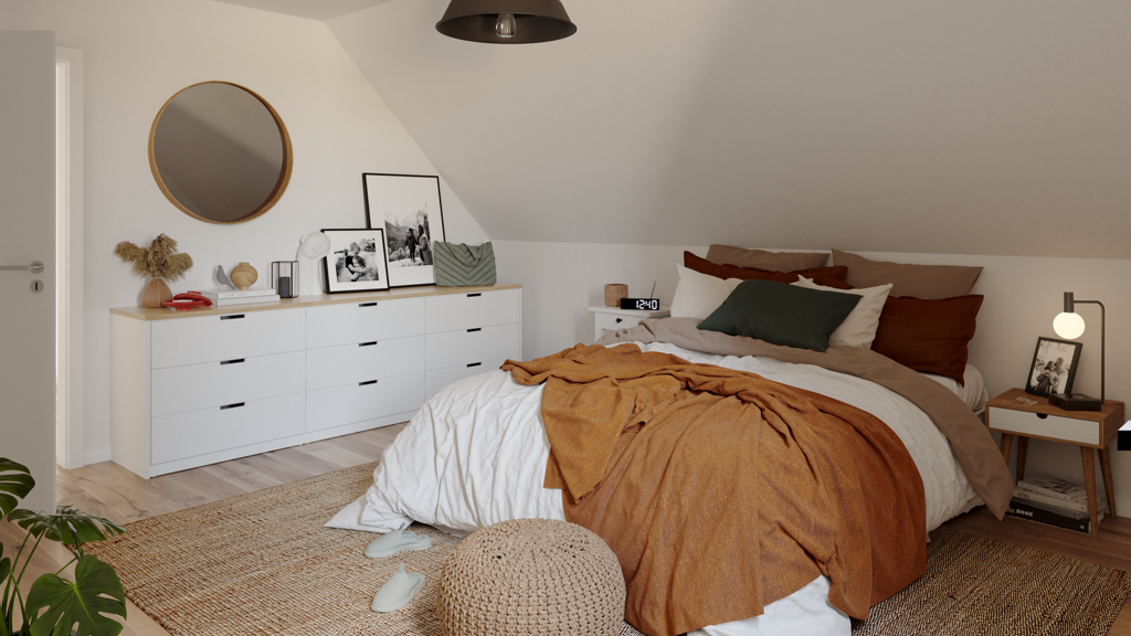 Auch das Obergeschoss besticht durch Großzügigkeit. Neben einem gemütlichen Schlafzimmer haben Sie dort zwei Kinder- und ein Gästezimmer, also genügend Platz, um sich zu entfalten.