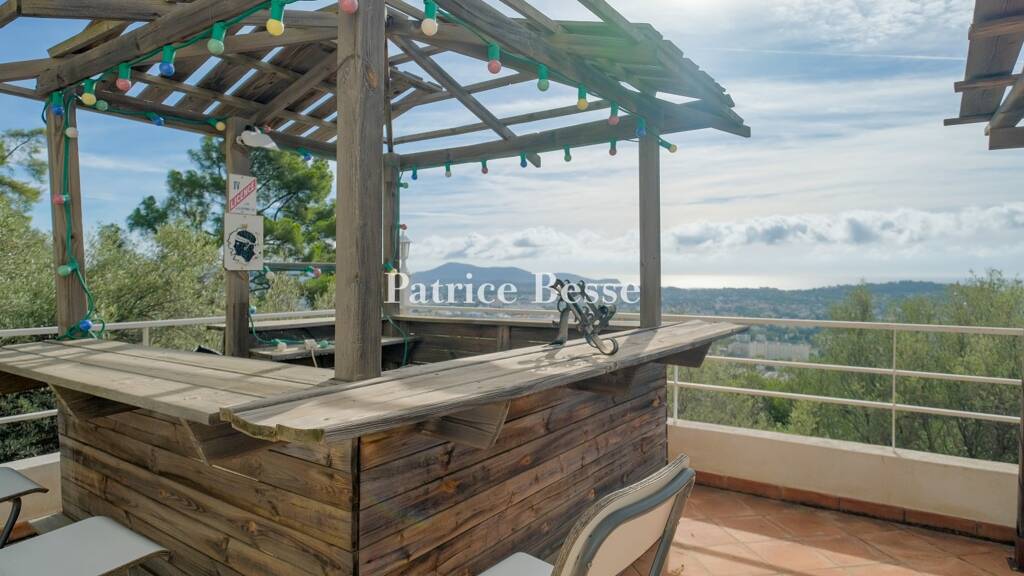 The villa, crowned with a roof of barrel tiles, has two floors, extended with terraces on three sides. It was entirely renovated in the early 1990s, then in 1998. Its one-metre-thick walls rendered with roughcast bear witness to the building's long history: the place was probably a priory that dated back to the 17th century - this is suggested by a millstone bearing the year '1630' that was found on the site. The south-facing house is rectangular, built upon the rocky hillside with a flat ground floor. It offers a floor area of around 280m². Its many sliding picture windows across its facade herald a bright interior bathed in natural light. These windows are fitted with electric roller shutters. The west gable wall is made of exposed pointed stonework. A niche in this wall houses two small statues of cherubs.