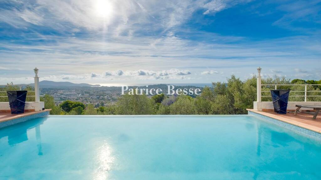 A vast terrace in front of the south-facing facade of white rendering offers a spectacular vista of the city below and, beyond it, Toulon's natural harbour. On this terrace, you can relax in an infinity pool where you can admire an unrivalled view of the sea. On the left, two shelters offer shade and coolness in the summer heat. On the north side, two walkways lead to the first-floor terrace and the garden.