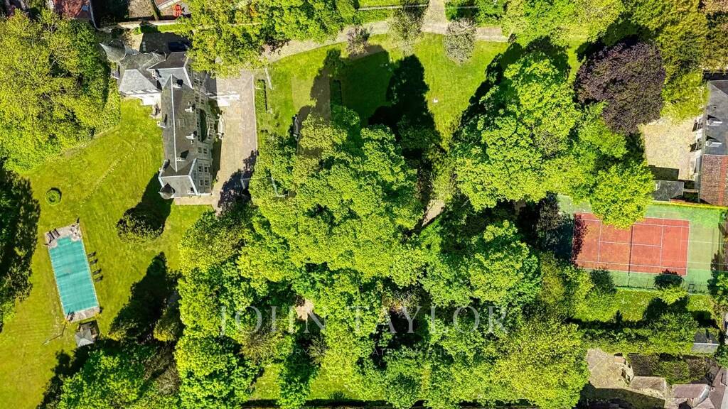 À l'extérieur, le parc arboré accueille une grande variété d'essences, un potager, une piscine chauffée et un court de tennis.