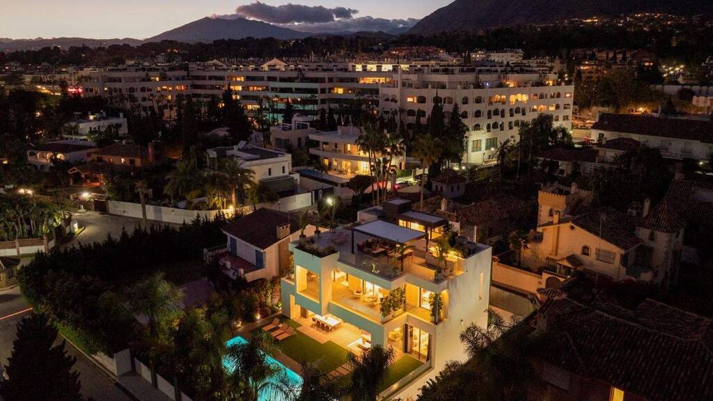 Diese außergewöhnliche Villa befindet sich in der prestigeträchtigen Gegend von Casablanca in der Goldenen Meile von Marbella. Nur einen kurzen Spaziergang von Sandstränden und weltbekannten Restaurants entfernt bietet diese Unterkunft einen unvergleichlichen Lebensstil, der das Beste aus Klima, Gastronomie und Wohlbefinden vereint. Eine nach Süden gerichtete Orientierung sorgt für reichlich natürliches Licht, während Panoramablick auf das Meer und die Bergblicke einen atemberaubenden Hintergrund zum Alltag bieten. Die Villa verfügt über vier weitläufige Ebenen, die alle mit einem Aufzug verbunden sind, über fünf geräumige Schlafzimmer und fünf luxuriöse Badezimmer, neben zwei Gäste-WCs. Das Interieur wurde nach höchsten Standards entwickelt, mit Doppelhöhendecken und nahtlosen Indoor-Outdoor-Verbindungen. Die Wohnräume sind komplett möbliert und profitieren von Annehmlichkeiten wie Klimaanlage, Doppelverglasung, Hausautomatisierung und Glasfaser-Internet. Zu den Highlights gehören ein begehbarer Kleiderschrank, ein Gästezimmer, ein Waschraum und ein Keller, allesamt zu einem ausgezeichneten Zustand. Gastronomie und unterhaltsam sind im Herzen dieser Unterkunft, mit einer Siematischen Küche ausgestattet mit Gaggenau Geräten, einer Dachterrasse Außenküche und Grillbereich. Das Solarium auf dem Dach ist ideal für ein Open-Air-Essen, komplett mit einer kompletten Küche und Jacuzzi. Freuen Sie sich auf Freizeiteinrichtungen, darunter einen beheizten 17-Meter-Privatpool, einen Fitnessraum, eine Sauna, einen Weinkeller und eine Sonnenterrasse, die alle in einem wunderschön angelegten Garten mit überdachten und unbedeckten Räumen zur Entspannung eingerichtet sind. Sicherheit und Bequemlichkeit werden mit einer gated Community, einer privaten rotierenden Garagenplattform, EV-Ladestationen und einem fortschrittlichen Home Automation System priorisiert. Die erstklassige Lage der Villa bietet sofortigen Zugang zu einer Vielzahl von Annehmlichkeiten, darunter Geschäfte, Schulen, Spielplätze, Golfplätze, Marbella Stadt, Hafen und Restaurants. Mit seiner Mischung aus unübertroffener Qualität, erstklassiger Lage und opulenten Eigenschaften bietet diese Villa einen wirklich anspruchsvollen Lebensstil in einem der wünschenswertsten Reiseziele an der Costa del Sol.