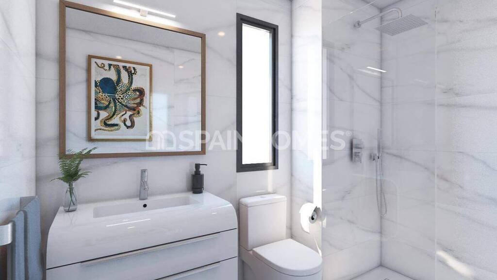 Die Wohnungen bestehen aus 2 Schlafzimmern, 2 Bädern, einem Wohnzimmer und einer offenen Einbauküche. Außerdem verfügt jede Wohnung über einen Parkplatz.