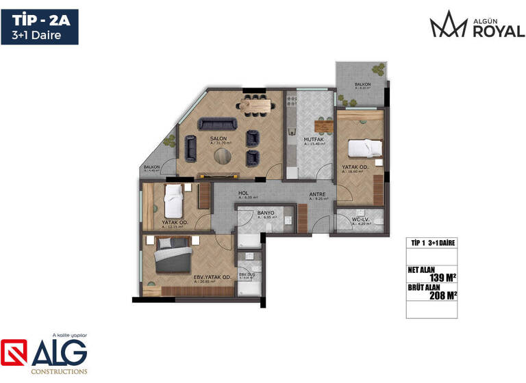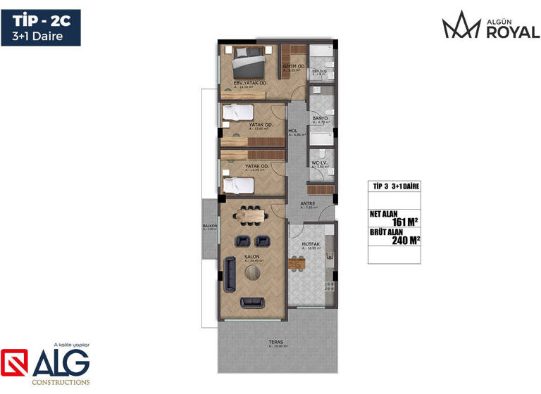 Lüks ve konforu en üst düzeyde sunan seçkin bir konut projesi olan Projekt Royal'e hos geldiniz. Tripleks villalar, dubleks villalar, maisonetler ve dairelerden olusan bir seçki ile size en yüksek beklentilerinizi karsilayan bir ev sunuyoruz.