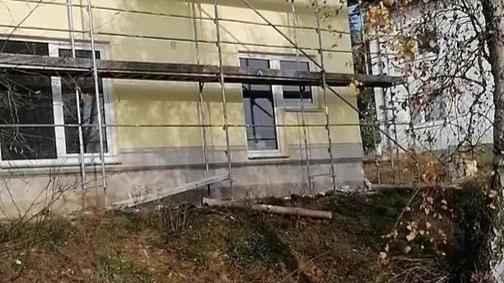 - Außenwände: Wandbausteine aus Porenbeton, Fassade verputzt