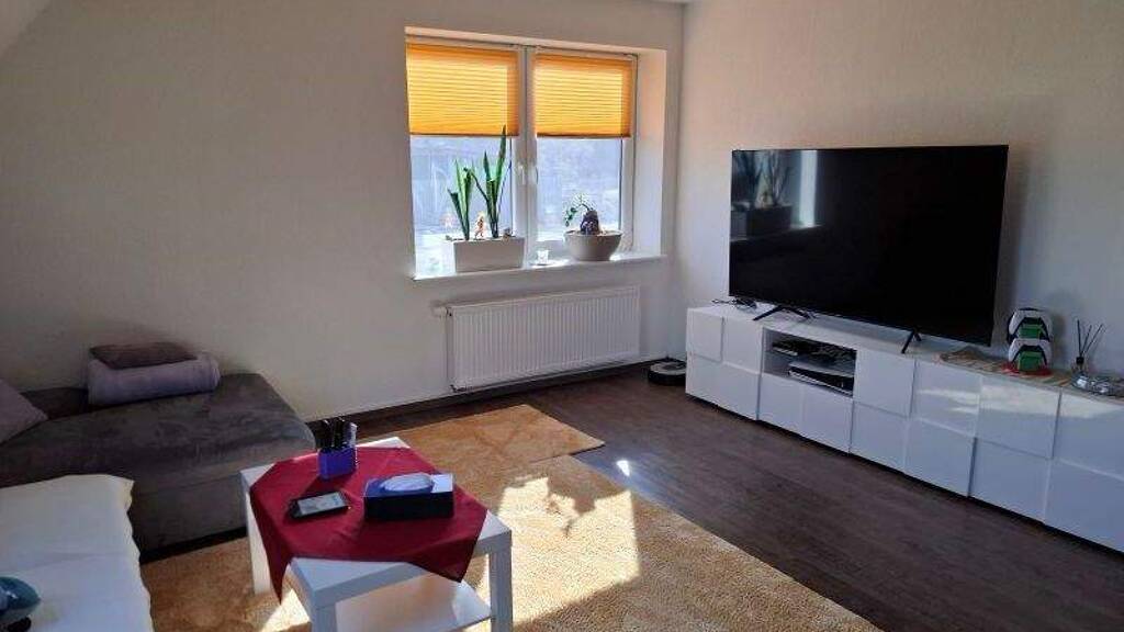 In dieser hellen und freundlichen 3,5 Zimmer Wohnung kann eine kleine Familie ein gemütliches und komfortables Zuhause finden. Vom eigenen Eingang aus führt eine schöne Holztreppe in den großzügigen Flur. Von hier aus erreichen Sie alle Räume. Vom Abstellraum aus haben Sie zusätzlich Zugang zum Dachboden, der weiteren Stauraum bietet. Die vorhandene Einbauküche gehört dem jetzigen Mieter und kann gegen Abstandszahlung übernommen werden.