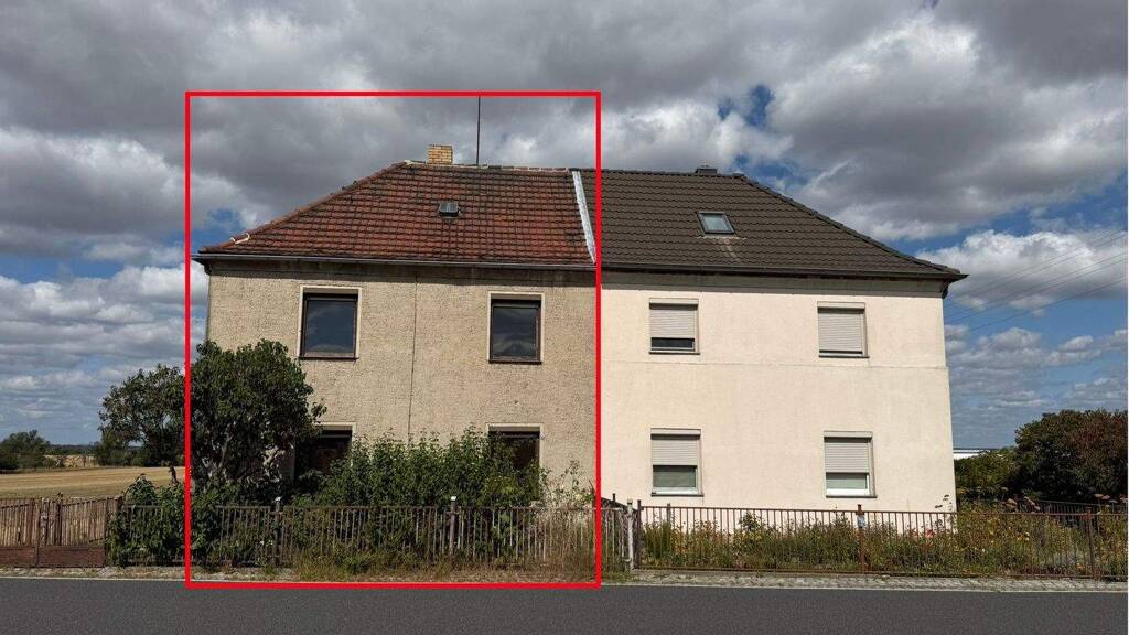 Zum Verkauf steht eine sanierungsbedürftige Doppelhaushälfte mit Seitenanbau, gelegen in ruhiger, ländlicher Wohnlage in Althirschstein, unweit von Riesa und Lommatzsch. Das Grundstück umfasst ca. 402 m² und bietet durch die Lage ohne potenzielle Nachbarschaftsbebauung eine seltene Wohnqualität mit dörflichem Charakter.