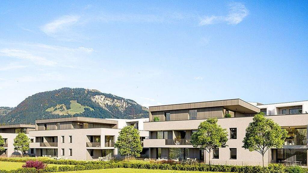 Dank der Anordnung in zweiter Reihe - geschützt durch eine Häuserzeile und moderne Schallschutzmaßnahmen - genießen Sie in Ihrem neuen Zuhause eine angenehme Wohnruhe, während Sie gleichzeitig von der idealen Anbindung profitieren. Besonders beeindruckend: Der spektakuläre Blick auf den Wilden Kaiser - eine Aussicht, die jeden Tag zum Genuss macht.