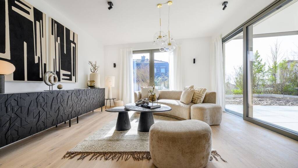 Diese möblierte Musterwohnung ist zum Bezug fertig gestellt. Der Privatgarten mit ca. 233 m² wird derzeit fertig gestellt. Ein Bezug ist ab Frühjahr 2026 möglich.