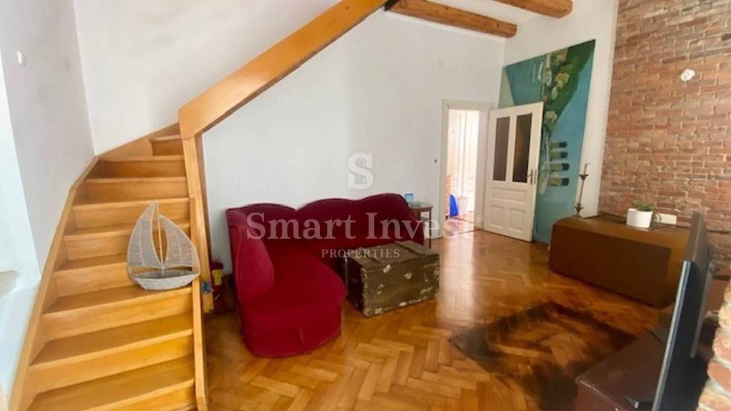 Die Wohnung befindet sich in einer alten österreichisch-ungarischen Villa und besteht aus zwei Etagen. Der Eingang zur Wohnung befindet sich im Obergeschoss.