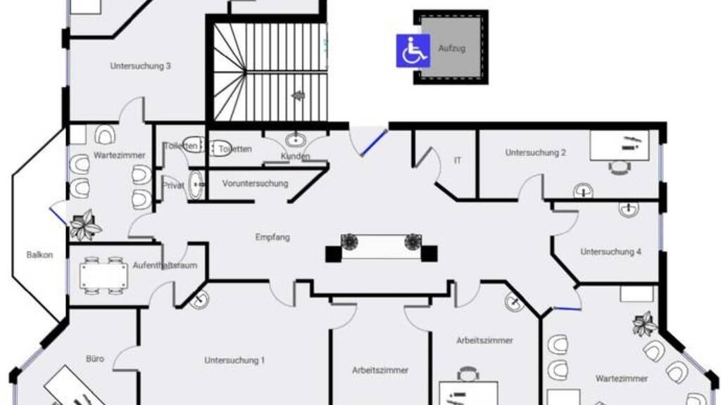 Sie haben damit die Möglichkeit ihre eigenen Geldinvestitionen selbst zu verwalten und auch zu kontrollieren. Aktiengeschäfte werden von fremden Händen verwaltet und angelegt. Meine Meinung und auch als Immobilienbesitzer, vertraue eher mir selbst. Jeder sollte wissen wie er sein Kapital anlegt und auch verwaltet. Immobilienbesitz war schon immer eine der sichersten Anlagen im Geldbereich. ----------------------------------------------------- Mit diesem wirklich guten Angebot, investieren Sie in eine sehr interessante Geschäftsimmobilie (bei Wunsch auch zur Wohnimmobile umnutzbar). Diese wird noch einige Jahre als Arztpraxis betrieben. Der sehr bekannte Mieter des Objektes wird noch einige Zeit als Nutzer zur Verfügung stehen. Einige Ideen, auch für eine mittel- oder langfristige Umnutzung, wurden bereits ein Stockwerk tiefer verwirklicht. Die großzügige Immobilienetage befindet sich in einem sehr gepflegtem Gebäude aus 1992 inmitten der Edelsteinstadt Idar-Oberstein mit besten Zugang für Einkäufe des täglichen Bedarfes. Nur ein paar Schritte zur Fußgängerzone mit vielen Geschäften und Restaurants. Die dazu gehörigen 8 Parkplätze bieten Kunden und Patienten der Arztpraxis gute Parkmöglichkeiten (5 überdacht, 3 im Freien). Der Zugang zum Gebäude ist dadurch von der Rückseite des Objektes sehr gut zu erreichen, zum Fahrstuhl ist ein ebenerdiger Zugang vorhanden.