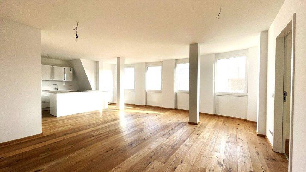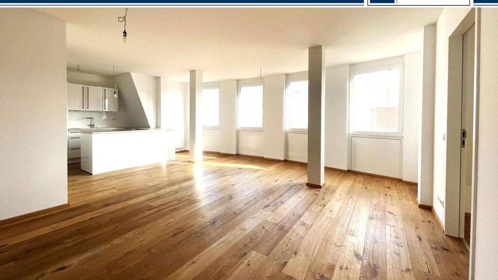 Die Wohnfläche verteilt sich auf einen großzügigen Wohn-/Essbereich mit offener Küche, einen Abstellraum, ein kleines Durchgangszimmer, ein Schlafzimmer, ein Gäste-WC sowie ein großes Tageslichtbad. Vor allem der Wohnbereich ist besonders lichterfüllt. Die Wohnung ist modern und hochwertig ausgestattet (ohne Möbel). Eine Küche wurde vom Vermieter eingebaut und ist im Mietpreis enthalten.