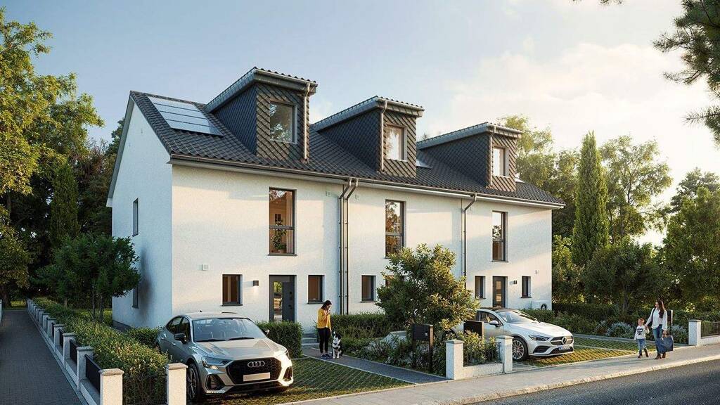 Die Häuser sind hochwertig ausgestattet mit Wärmepumpe, Fußbodenheizung, 3-fach-Verglasung, elektrischen Rollläden mit Aluminiumlamellen, kontrollierter Lüftungsanlage und einer Photovoltaikanlage auf dem Dach zum Eigenverbrauch. Der Anschluss für eine Wallbox ist vorgerüstet.