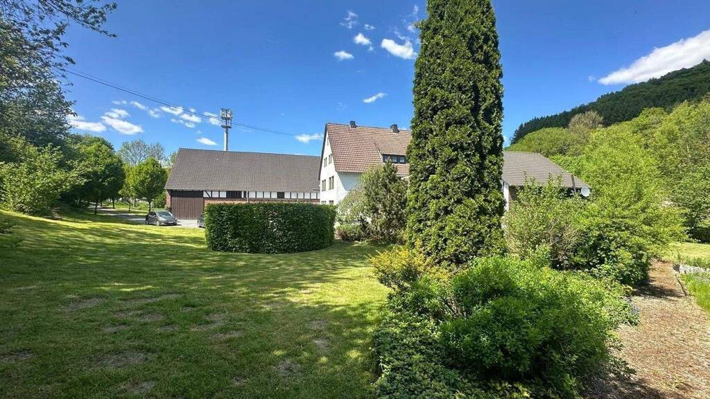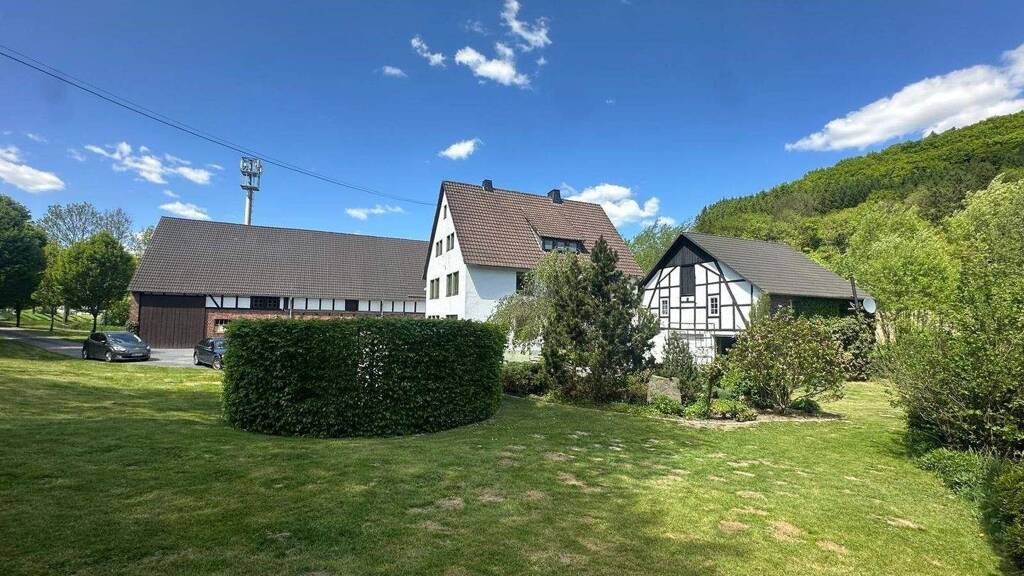 Kurzbeschreibung Hofanlage im Sauerland nahe Eslohe Objekt In der malerischen Landschaft des Sauerlands befindet sich diese einzigartige Liegenschaft. Der ehemalige landwirtschaftliche Hof bietet nicht nur genügend Platz für die ganze Familie, sondern auch Möglichkeiten, die Leidenschaft für Pferde oder andere Tiere zu verfolgen. Geboten werden Ihnen ein sehr gepflegtes und ständig renoviertes Zweifamilienhaus sowie die ehemaligen gut erhaltenen Stallungen, die auf Ihre Nutzung warten! Die räumliche Aufteilung des Stalles kann aufgrund seiner Bauweise ohne viel Aufwand verändert werden. Die Errichtung eines Reitplatzes ist auf dem Grundstück möglich. Zusätzliche Weideflächen können nach Absprache dazu gepachtet oder gekauft werden. Die alleeartige, eigene Zufahrt, der liebevoll gestaltete Bauerngarten sowie ein Partyraum nebst Garagen runden dieses attraktive Angebot ab!